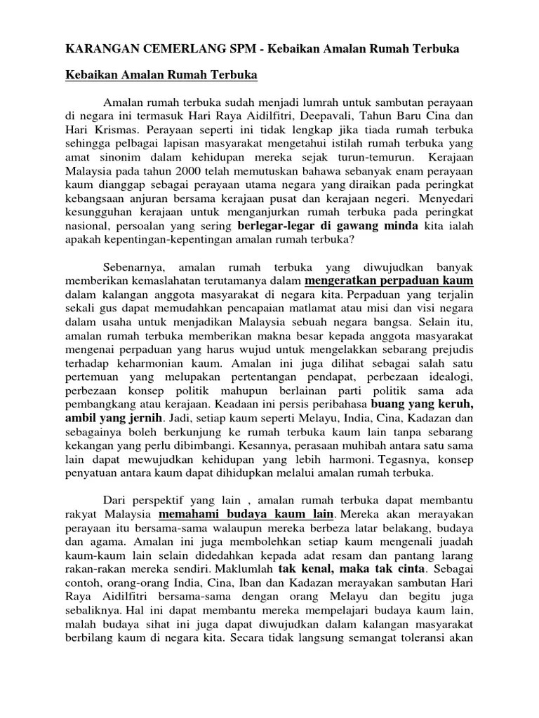 Doc Karangan Cemerlang Spm Kebaikan Amalan Rumah Terbuka Najat Ruhi Academia Edu